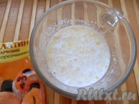 Желатин поставить на небольшой огонь и подогреть до полного растворения (не кипятить).