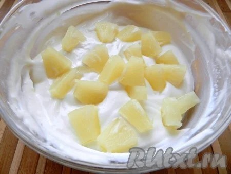 Приготовить крем. В чаше сметану с пудрой взбить венчиком.
