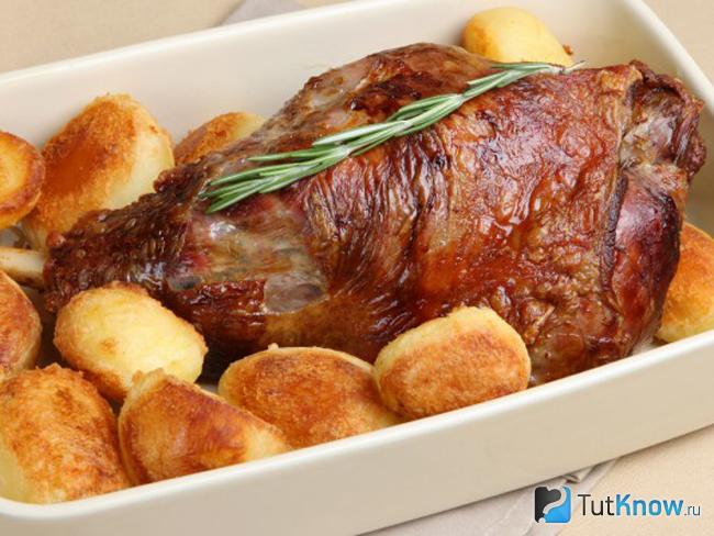 Баранья нога, запеченная в духовке в рукаве с картошкой - рецепт